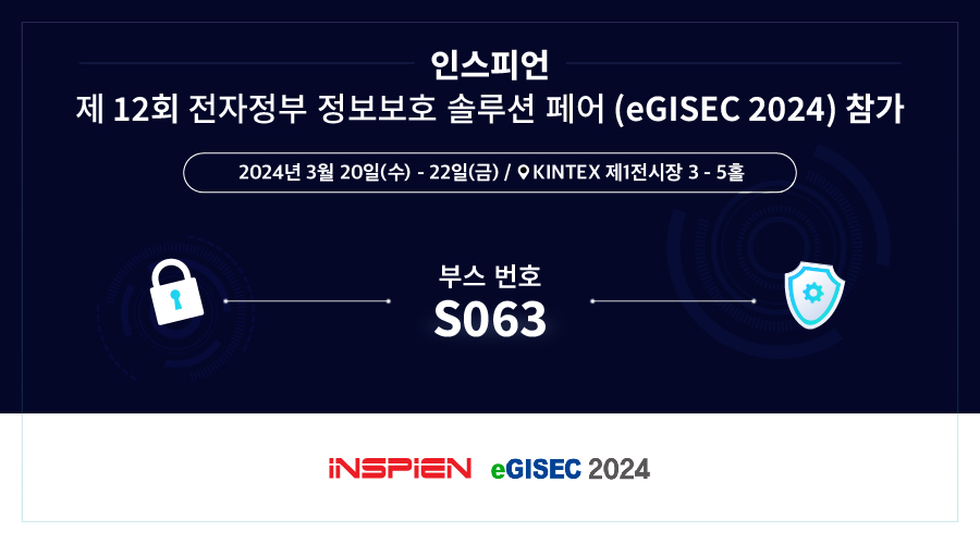 데이터 보안솔루션 전문업체 인스피언(대표이사 최정규)이 오는 3월 20일부터 22일 일산 킨텍스에서 행정안전부 주최로 열리는 ‘제 12회 전자정부 정보보호 솔루션 페어(eGISEC2024)’에 참가한다.